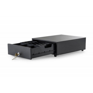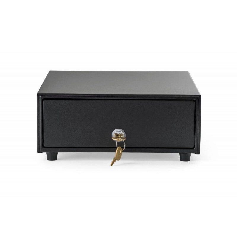 Данная модель является одной из самых компактных в классе и отлично подходит для небольших торговых точек, кафе, заведений street-food и т.п. Она не имеет соленоида и возможности подключения к онлайн-кассе, открытие денежного ящика осуществляется вручную поворотом ключа. Наличие резиновых ножек на нижней панели корпуса обеспечивает устойчивость на рабочей поверхности.