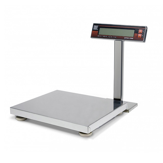Фасовочные весы могут работать в любых условиях, поскольку платформа изготовлена из пищевой нержавеющей стали и имеет размеры 300х200 мм. Удобство работы обеспечивает большой жидкокристаллический дисплей на шесть сегментов с высотой цифр 32 мм, на который выводится вся необходимая информация.
